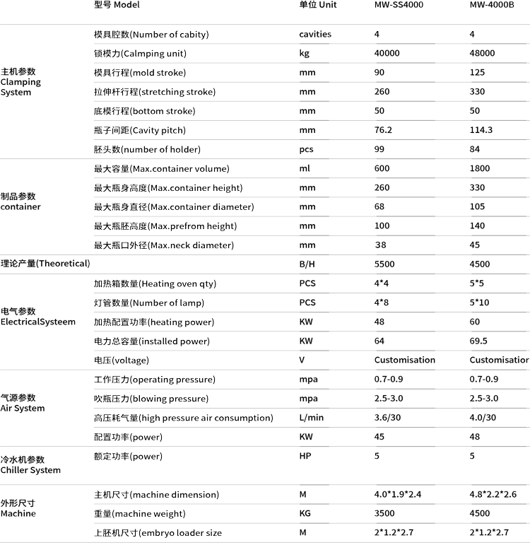 Servo motor for preform transfer Servo motor for preform loading Combination vlave and air recyling device for energy saving and environment protection PID Constant temperature control for heating preforms and fan forair ventilation